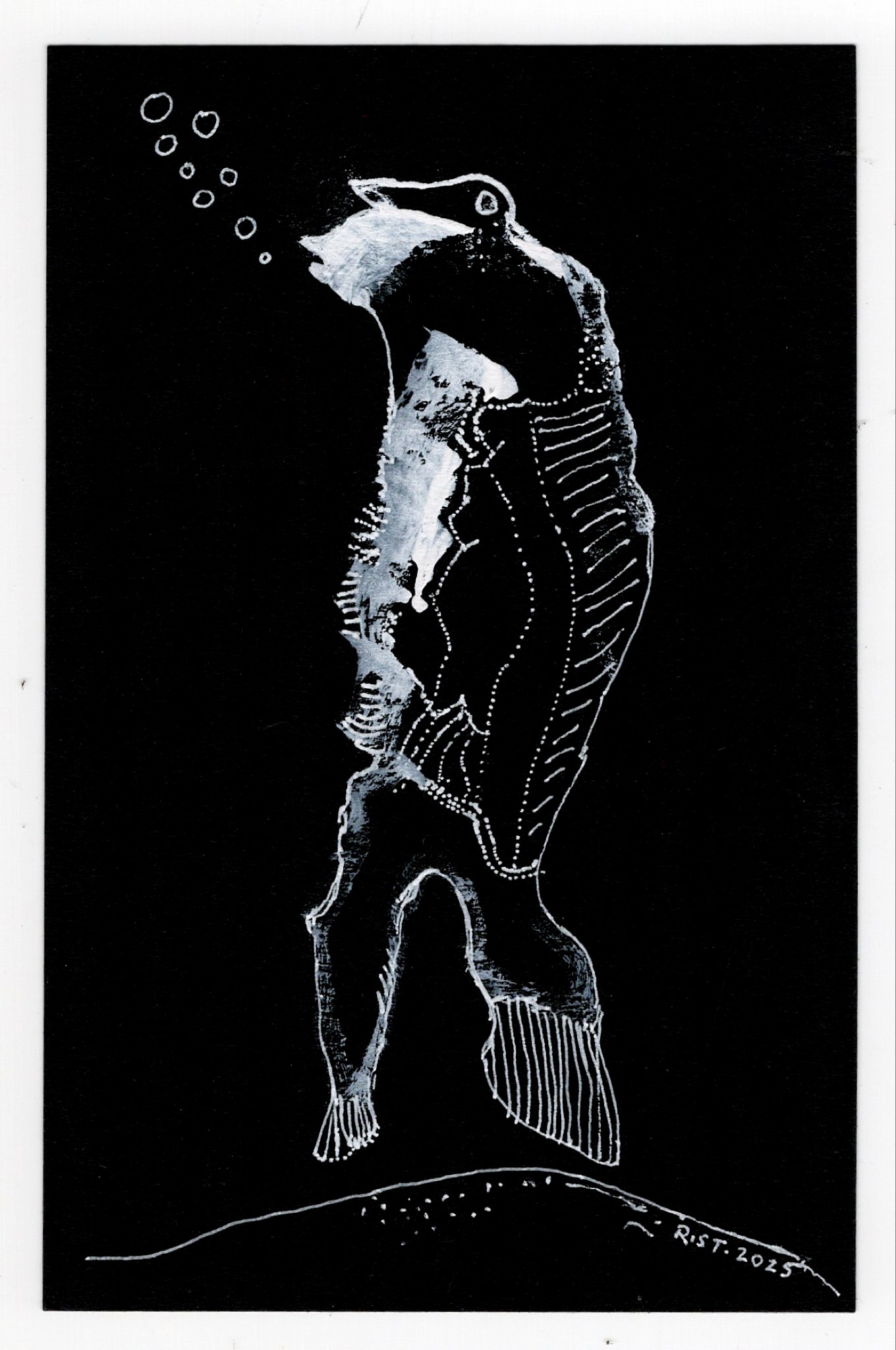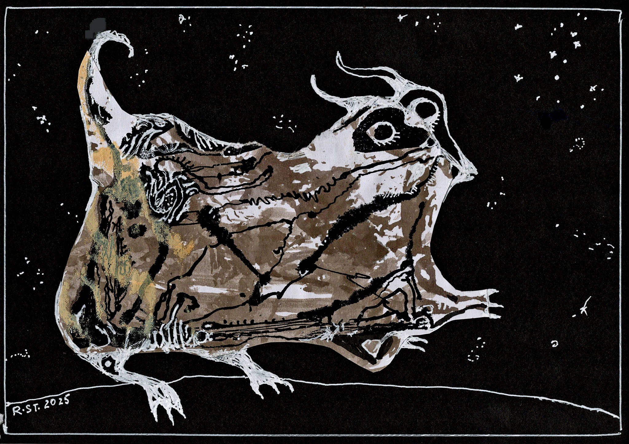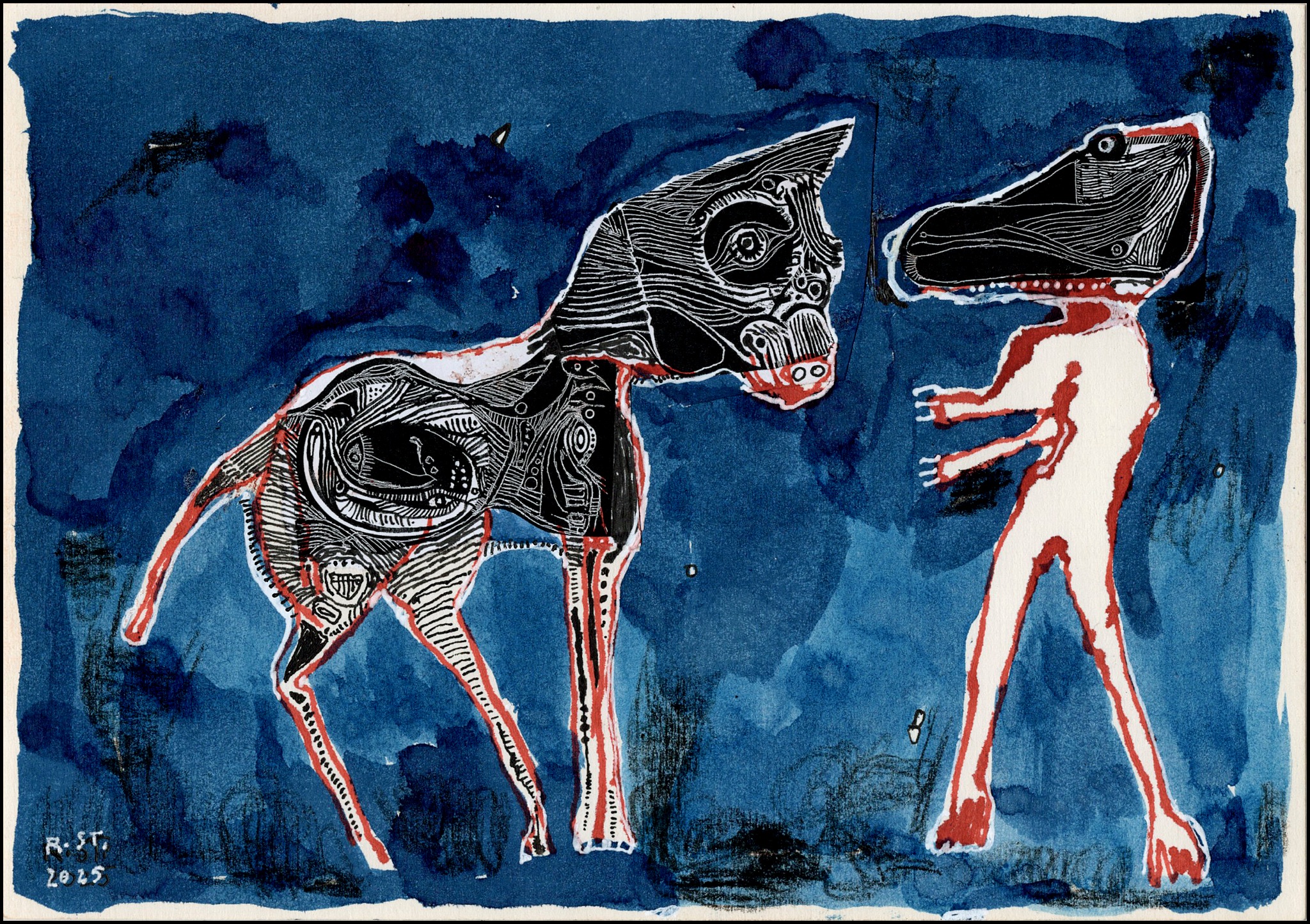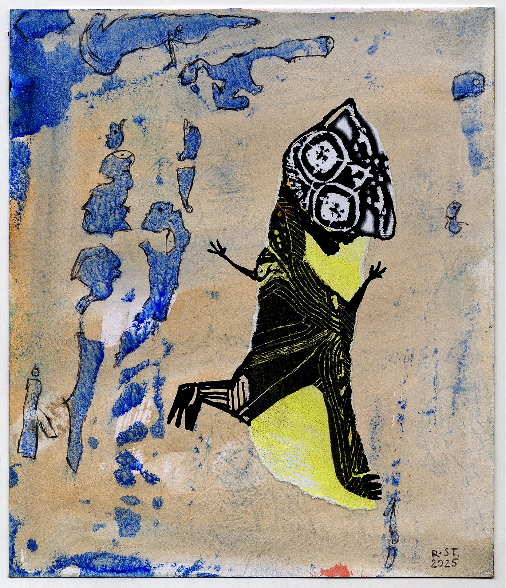 Die gezeigten Arbeiten bilden eine Auswahl aus einer fortlaufenden Serie von inzwischen über 200 Blättern. Jede Figur steht für sich, zugleich sind sie Teil eines offenen Systems von Erscheinungen, die sich nicht eindeutig zuordnen lassen – weder zoologisch noch erzählerisch. Sie bleiben in Bewegung, auch dann, wenn sie stillstehen.