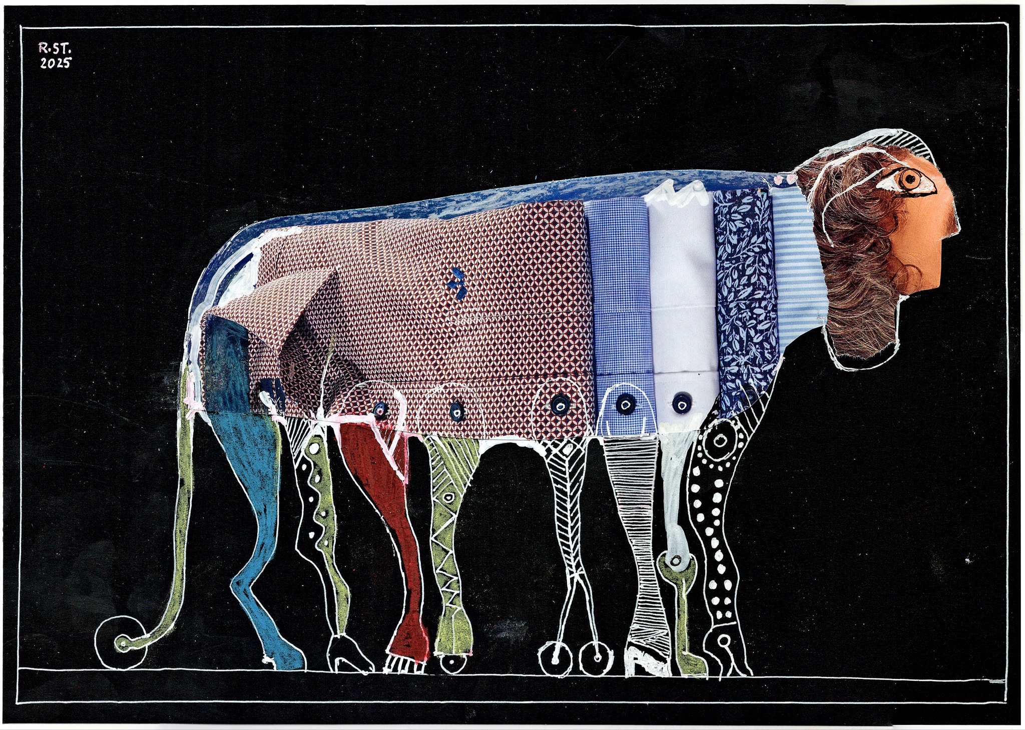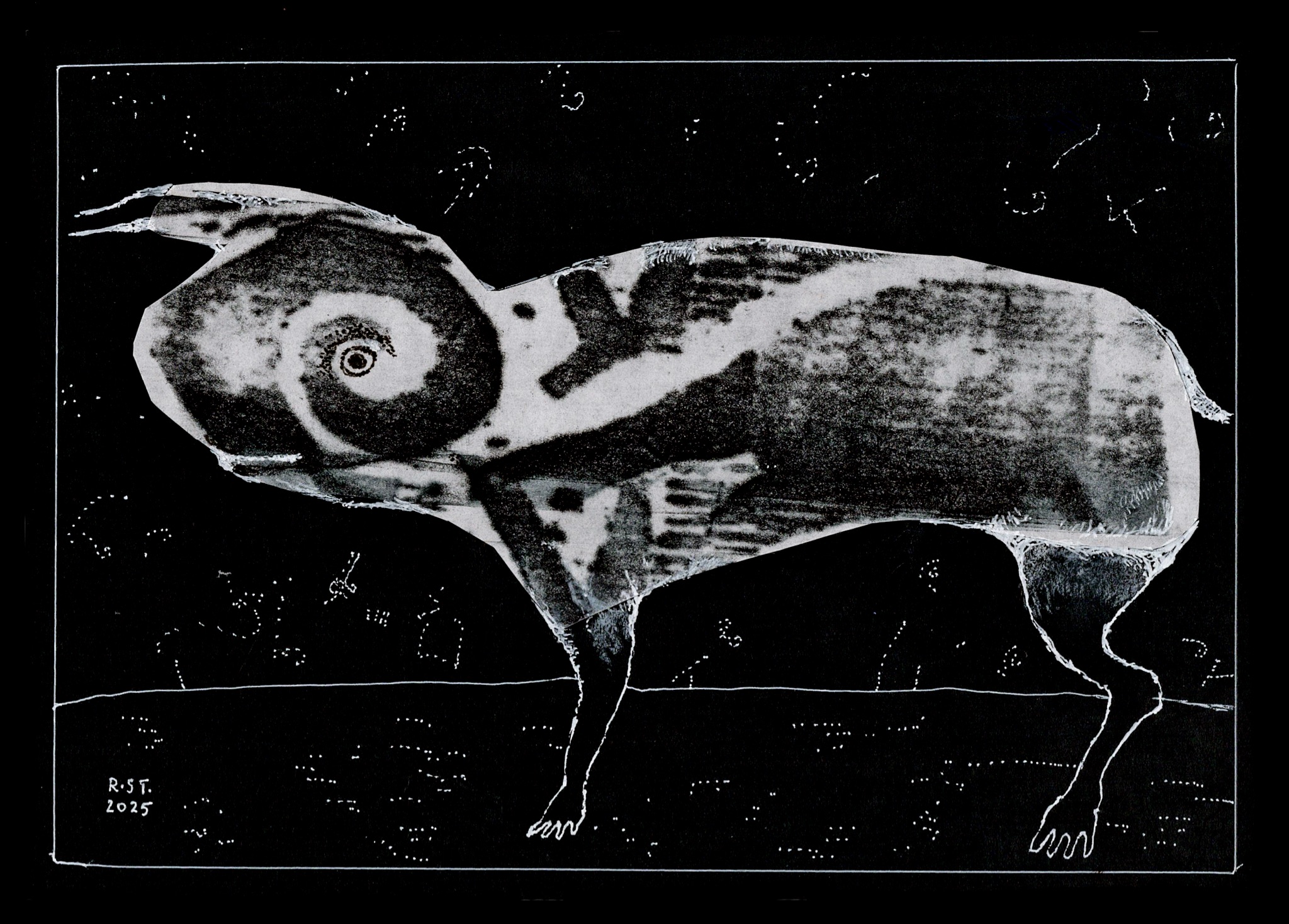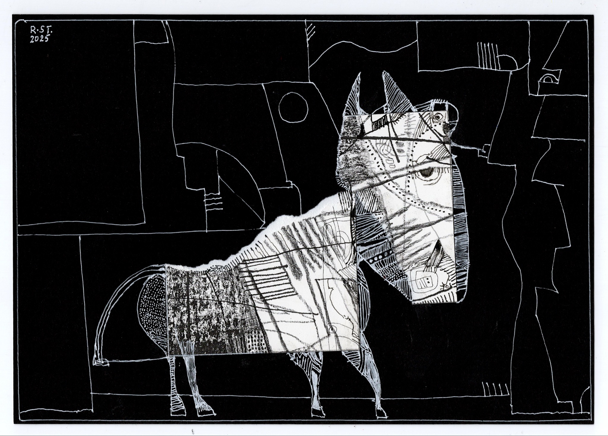 Begonnen in einer schlaflosen Nacht, hat sich die Serie in den folgenden Tagen weiterentwickelt – nicht als Rückkehr zur Ordnung, sondern als Fortsetzung eines einmal geöffneten Zustands. Die Arbeiten bestehen aus kleinen Formaten: Zeichnungen, Collagen oder hybride Kombinationen aus beidem. Fragment, Überlagerung und Verschiebung sind zentrale Verfahren.